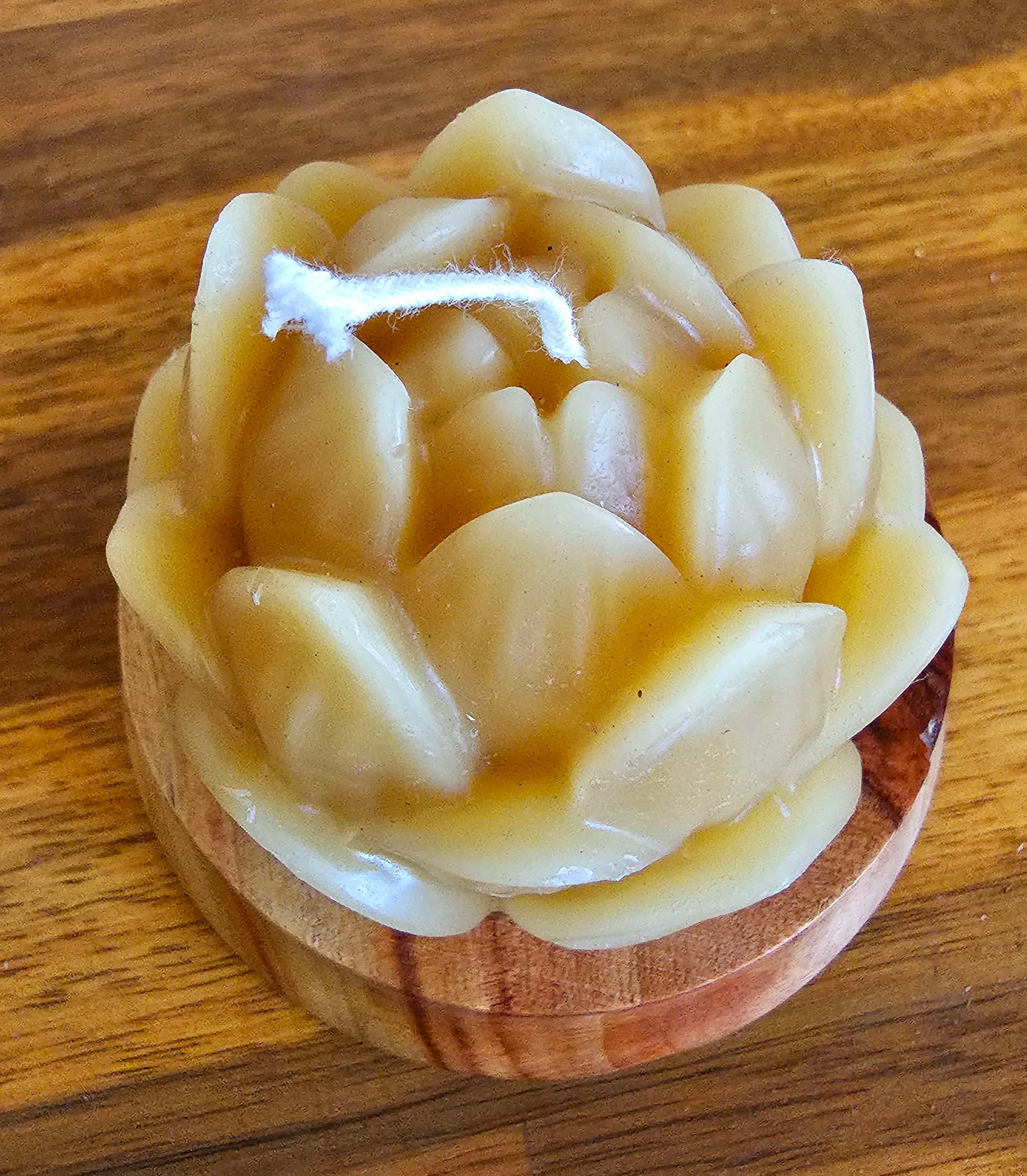 Lotus New Bloom & Wooden Holder-100% Beeswax Candle